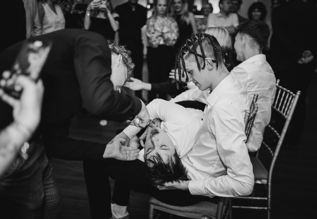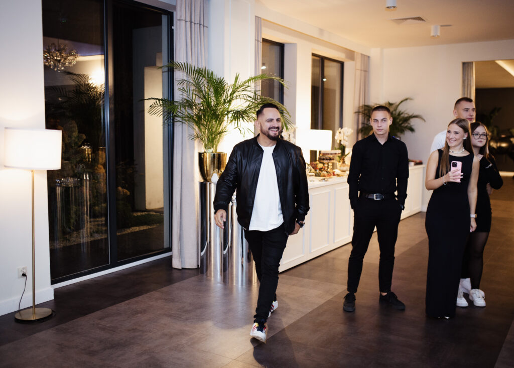 Jeśli Wasza impreza jest w porze letniej, jest to doskonały czas by wyskoczyć przed salę w otoczenie zieleni i wykonać kilka pamiątkowych zdjęć z rodziną i gośćmi. Sesję plenerową wykonujemy zazwyczaj po pierwszym bloku muzycznym.