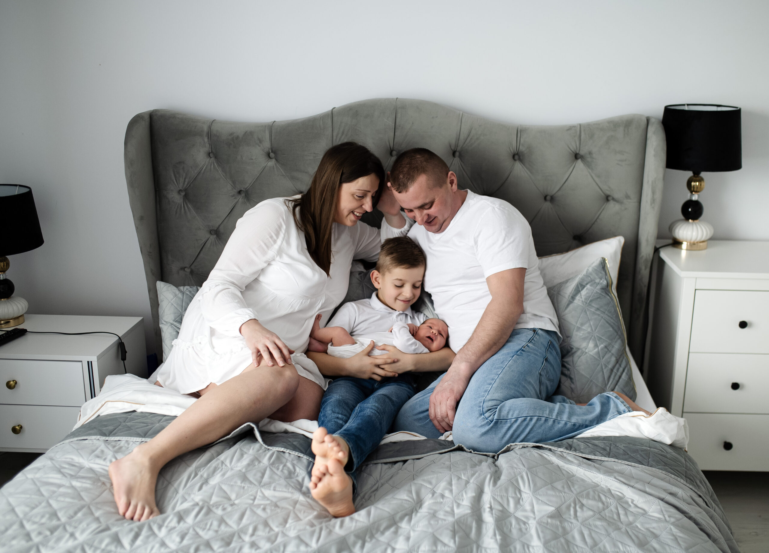 Zdecydowanie warto zadbać o odpowiedni wybór strojów. Dla mnie na każdej sesji najważniejsze jest to, byście czuli się dobrze, komfortowo i wyjątkowo (i nie mam tu na myśli zbytniej elegancji, to na domowych sesjach lifestylowych nie wygląda dobrze). Zadbaj o to, by Wasze stroje współgrały ze sobą kolorystycznie. Zdecyduj się na podobną paletę odcieni, niech to będą np. 2-3 pasujące do siebie kolory. Unikaj krzykliwych kolorów oraz t-shirtów z dużym logo i nadrukami. Jakie kolory sprawdzają się na sesji domowej? Zdecydowanie polecam jasne kolory, biel, ciepłe barwy (musztardowy, karmelowy, ciepły żółty, oliwkowy, ciemna zieleń) i pastele.